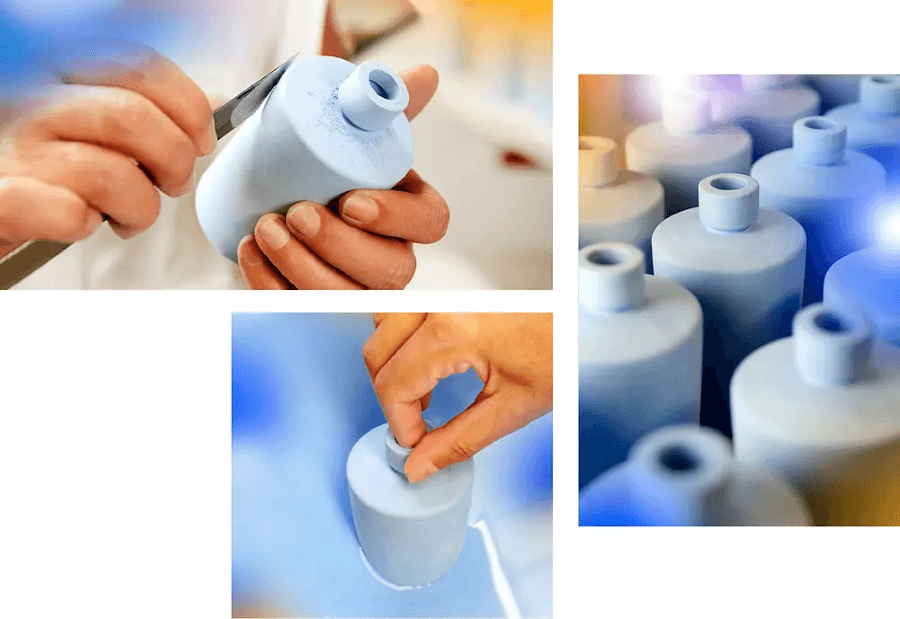A essência é transferida para um frasco de porcelana especial, elaborado por um longo processo manual de confecção e decoração com elementos artísticos inspirados na fragrância.
